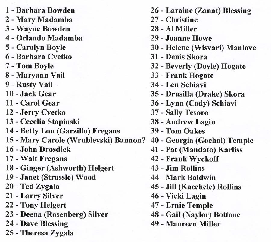 Class of 1963 (Last revised January 24, 2013) Identification of Group Picture with Spouses - - - - - - - - - - - - - - -
